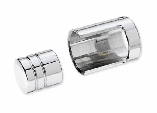 - Für einen sauberen Look werden die verchromten Abdeckungen aus Billet Aluminium von bündig abschließenden Inbusschrauben gehalten.