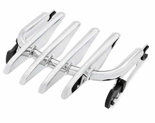 Elegant und praktisch. Der klassische, vierstrebige abnehmbare Gepäckträger wurde an die schlanken, gestreckten Linien der heutigen Custom-Motorräder angepasst.