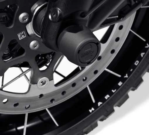 Langlebige technische Materialien schützen die Vorderachse des Modells Pan America 1250 vor Beschädigungen bei einem Umkippen mit geringer Geschwindigkeit.
