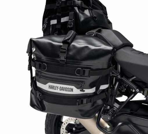 Die Adventure Soft Luggage Linie ist für den Hardcore-Offroad-Fahrer gedacht. Speziell für den Motorradgebrauch entwickelt, widerstehen diese robusten Taschen Schäden, wenn das Motorrad umkippt. Das Taschenmaterial ist wasserdicht, die Außentaschen haben wasserdichte Reißverschlüsse, und der Rolltop-Verschluss sorgt für eine wetterfeste Abdichtung, so dass Sie mit der Gewissheit fahren können, dass Ihre Ausrüstung bei allen Bedingungen trocken bleibt. Die Rolltop-Konstruktion und mehrere Kompressionsriemen ermöglichen es, die Ladung eng zu schnüren und geben diesem Gepäckstück eine flexible Kapazität. Die Taschen sind reflektierend, um ihre Sichtbarkeit bei schlechten Lichtverhältnissen zu erhöhen.