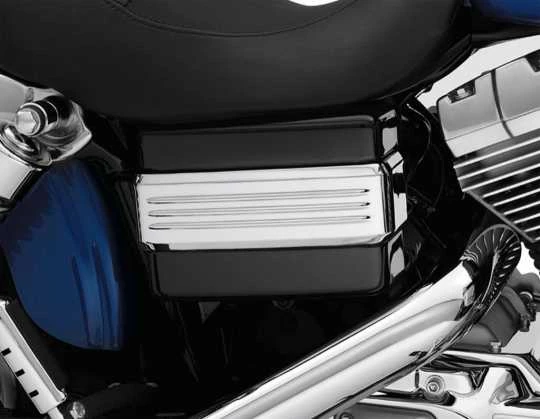Passend für Harley-Davidson Dyna ab ’06 (außer FLD, FXDL, ’13-’17 FXDB & ’14-’17 FXDF). Das einfach zu montierende gerippte Chromband bietet entweder einen funkelnden Kontrast im Zusammenspiel mit der lackierten Batterieabdeckung oder es ergänzt den Look der verchromten Batterieabdeckung P/N 66375-06.