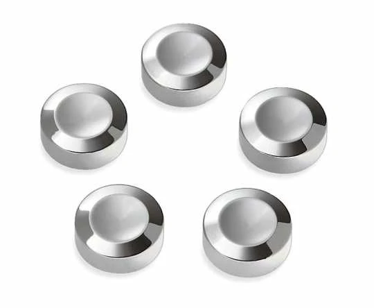 Diese verchromten Kappen mit Federclips verbergen die originalen Ritzelschrauben und geben auch dieser Partie der Maschine einen sauberen Custom-Look.
