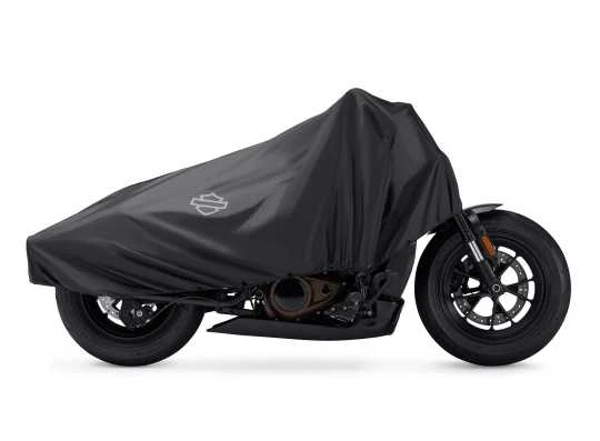 Reisen mit Schutz. Diese leichte, wasserabweisende Compact Travel Cover ist einfach zu verpacken und deckt die wichtigsten Berührungspunkte des Motorrads von der Windschutzscheibe bis zum hinteren Sitzbereich ab.