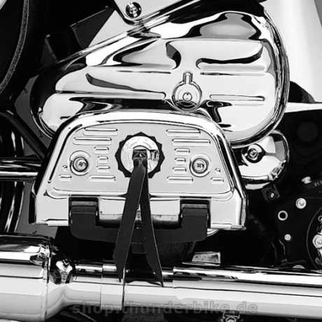 Heritage Softail Mit ihren von der Classic inspirierten Conchos sehen diese Trittbrettabdeckungen großartig aus, egal ob aus- oder eingeklappt.