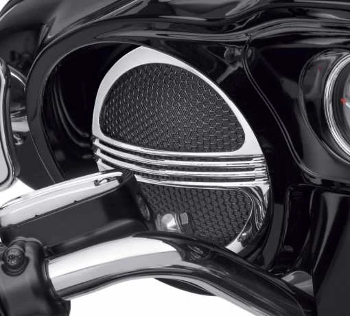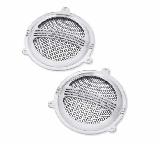 Schlägt einen neuen Ton an. Defiance Lautsprechergitter schmiegen sich an originale oder Boom! Audio Stage I Lautsprecher. Die mit einem Wabenraster und dünnen horizontalen Leisten versehenen Defiance Lautsprechergitter schützen die Lautsprechermembran und sorgen für einen Hauch Luxus am Soundsystem des Bikes.