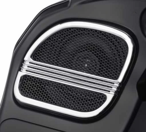 Schlägt einen neuen Ton an. Defiance Lautsprechergitter schmiegen sich an originale oder Boom! Audio Stage I Lautsprecher. Die mit einem Wabenraster und dünnen horizontalen Leisten versehenen Defiance Lautsprechergitter schützen die Lautsprechermembran und sorgen für einen Hauch Luxus am Soundsystem des Bikes. Genau passend zu Ihrem Custom-Style.