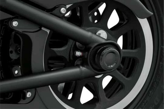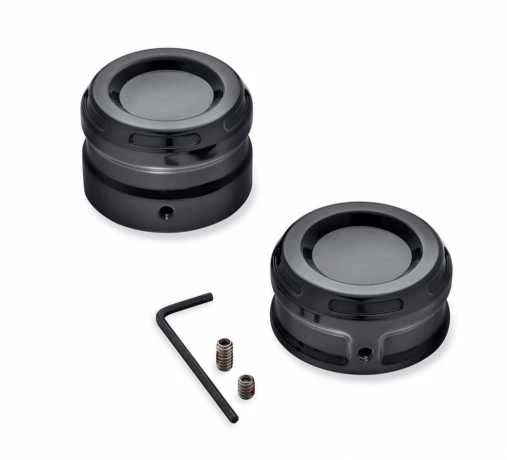 Die aus Aluminium gefrästen Dominion Collection Hinterachsmutterabdeckungen verleihen dem Heck des Bikes Stil und sind die perfekte Ergänzung zu anderen Dominion Collection-Zubehörteilen.