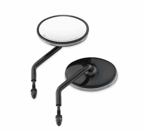- Diese spiegelglatten, gewölbten Gehäuse und mit feuchtglänzenden, schwarzen Oberflächen ausgestatteten, kompakten Billet Spiegel widerspiegeln einen neuen, modernen Stil