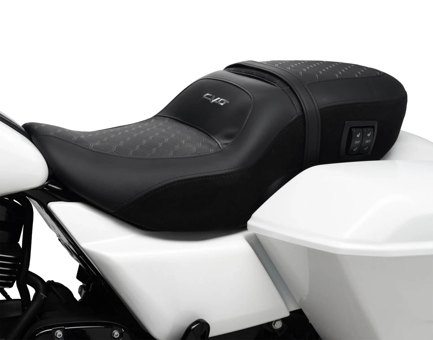Verlängere die Motorradsaison dank des Komforts dieses beheizbaren Touring Sitzes, der zum einzigartigen Look und Branding Deines CVO Motorrads passt. Der Harley-Davidson Sitz Sundowner sorgt für höchsten Komfort auch auf langen Strecken. Die tiefe Sitzschale ermöglicht eine bequeme Touring-Sitzhaltung und ist großzügig gepolstert. Fahrer und Beifahrer genießen so höchsten Komfort auf langen Touren. Die zwei Heizzonen für Fahrer- und Soziussitzbereiche können unabhängig voneinander gesteuert werden.