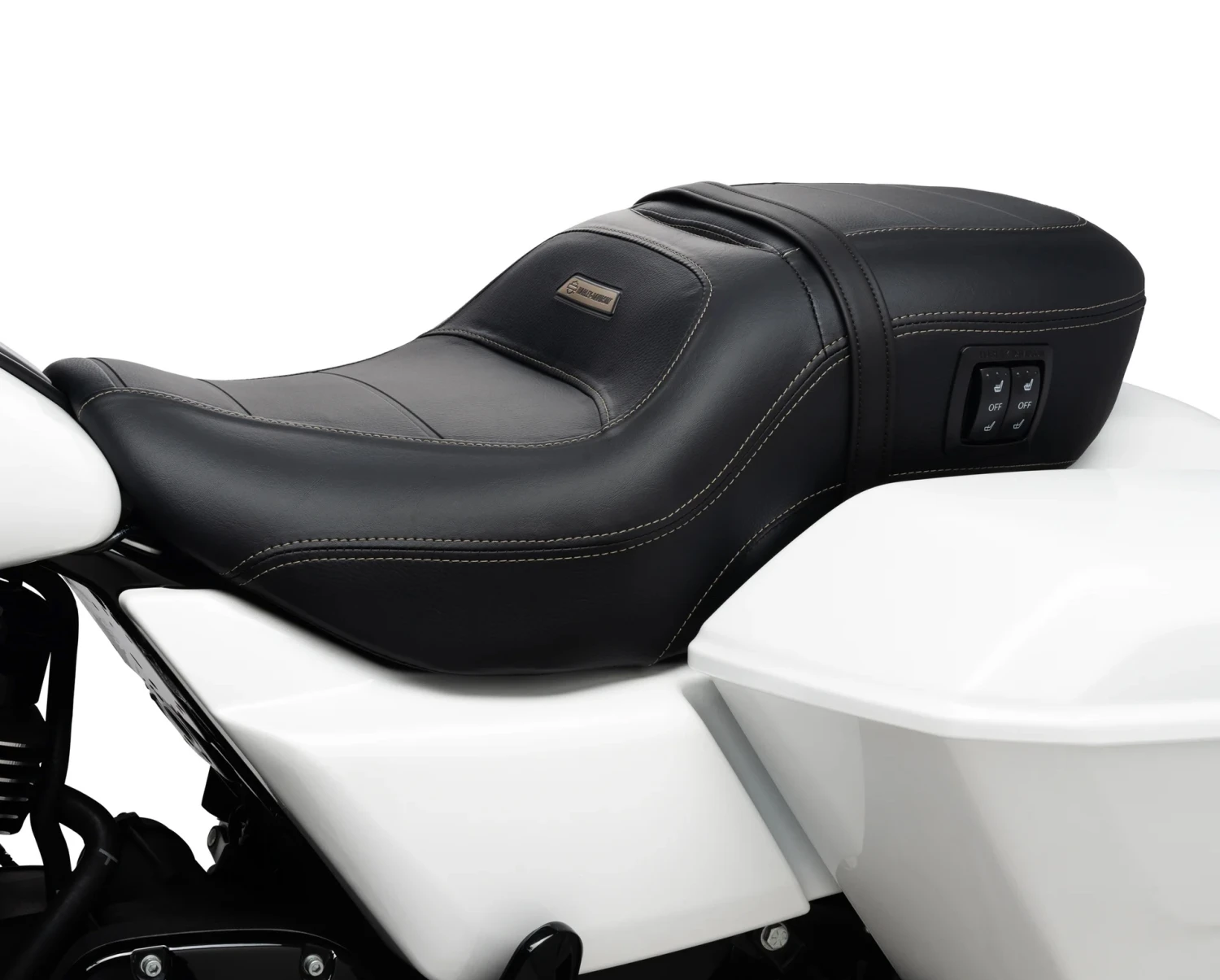Verlängere die Motorradsaison dank des Komforts dieses beheizbaren Touring Sitzes. Der Harley-Davidson Sitz Sundowner sorgt für höchsten Komfort auch auf langen Strecken. Die tiefe Sitzschale ermöglicht eine bequeme Touring-Sitzhaltung und ist großzügig gepolstert. Fahrer und Beifahrer genießen so höchsten Komfort auf langen Touren. Die zwei Heizzonen für Fahrer- und Soziussitzbereiche können unabhängig voneinander gesteuert werden.