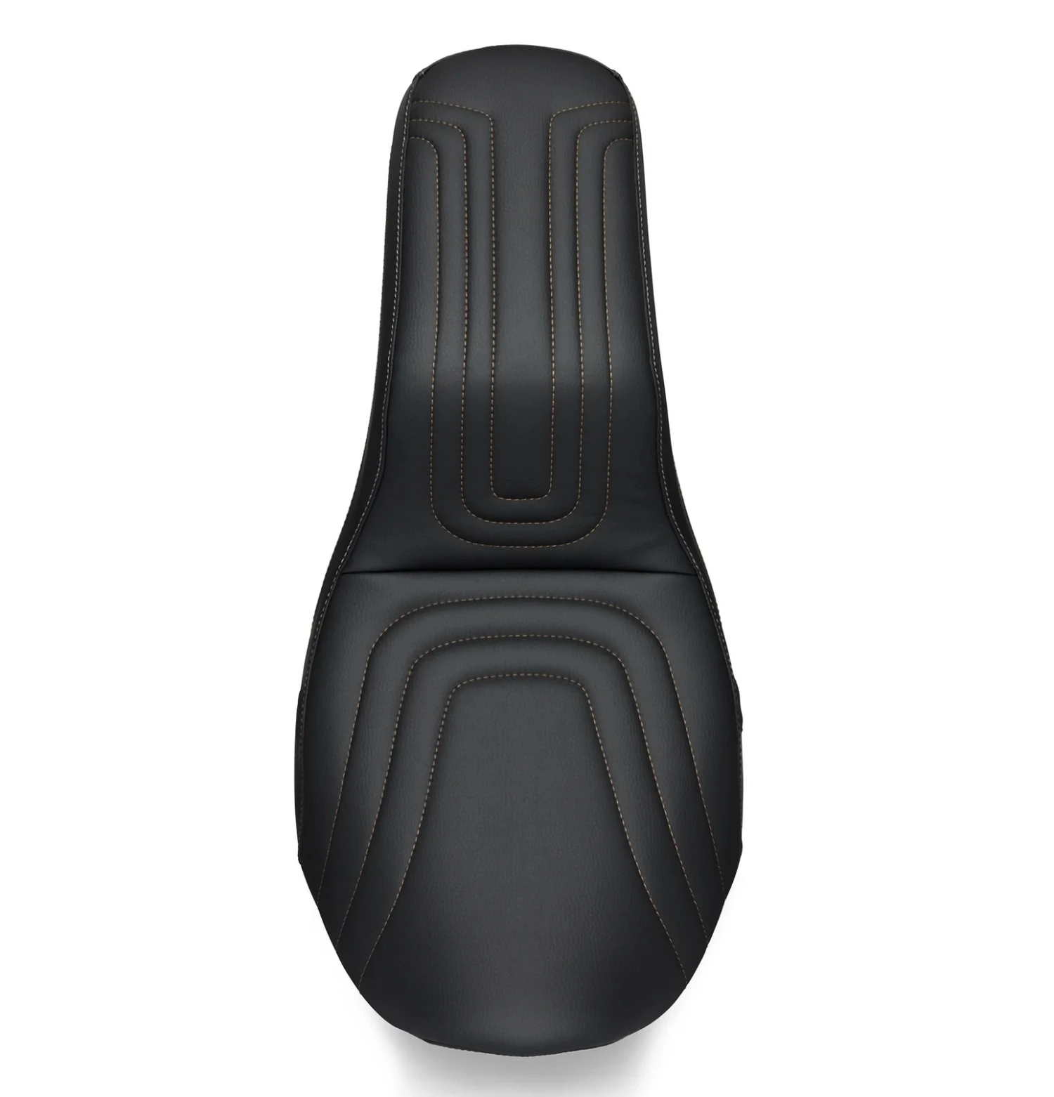 Bringe Deinen individuellen Stil auf den Punkt. Diese einteilige Doppelsitzbank aus der Switchback Kollektion zeichnet sich durch hochwertiges glattes schwarzes Vinyl mit einem auffälligen U-Naht-Muster auf der Fahrer- und Soziussitzfläche, ein Mehrpanel-Design und Kontrastnähte über die gesamte Sitzbank aus.
