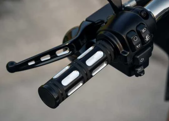 Dieses Handhebel Kit wurde für die Ergänzung zu Edge Cut Zubehörteilen entworfen. Die geschlitzten Handhebel sind mit einem Edge Cut Finish hergestellt, das an schwarzen oder auch Chromhebeln besonders gut zur Geltung kommt. Die schwarz eloxierte Oberfläche wird bearbeitet, um Rohaluminium-Highlights zum Vorschein zu bringen.
