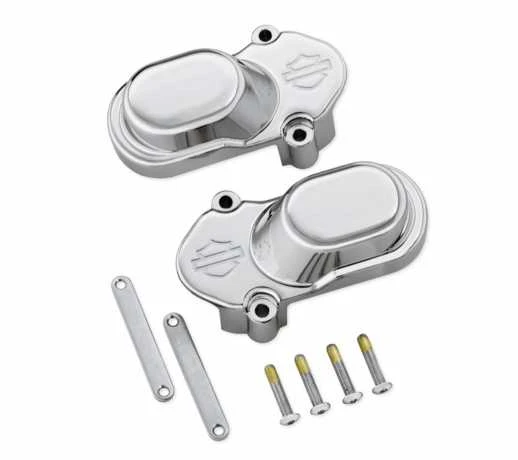 Die verchromte Druckgussabdeckung gehört seitlich an Schwinge und Achse.