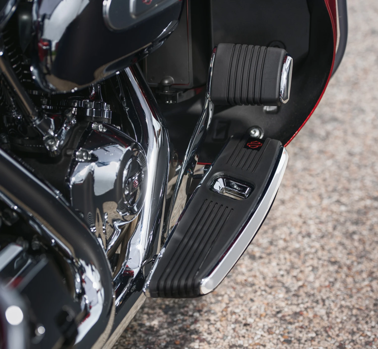 Die Bedienelemente der Harley-Davidson Kahuna Kollektion mit ihren spiegelverchromten Oberflächen sind unaufdringlich und kraftvoll, während das tiefschwarze Gummi an den richtigen Stellen für gute Haftung und sicheren Halt sorgt.