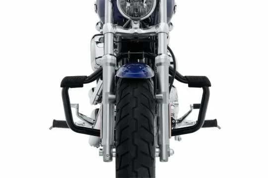 - Die fließende Form dieses Motorschutzbügels ergänzt den traditionellen Look des Bikes. In das elegant geschwungene Oberteil wurden Highway Fußrasten integriert