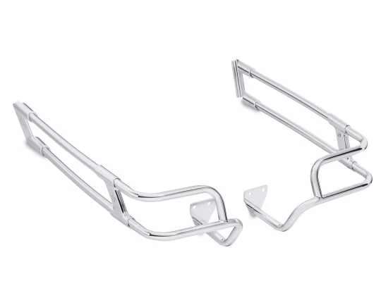 Stil und Schutz zum Anschrauben. Diese Saddlebag Guard Rails umschließen und schützen den unteren Teil der Tasche und verleihen Ihrem Touring Motorrad einen traditionellen Look. Die dickwandigen, verchromten Rohre und die eleganten Gusshalterungen werden sicher an den Original Equipment Satteltaschenschutz geklemmt und sorgen für ein nahtloses Aussehen.