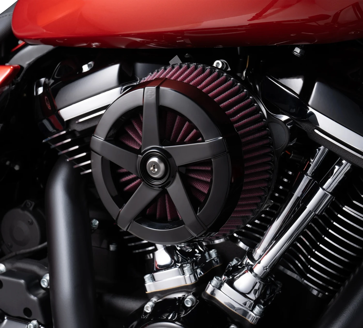 Verpass Deinem runden Screamin‘ Eagle Extreme Luftfilter mit diesem Deckel aus Aluminiumguss mit fünf Speichen mehr Performance-Style.
