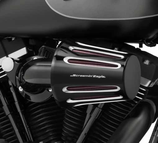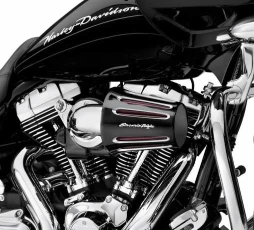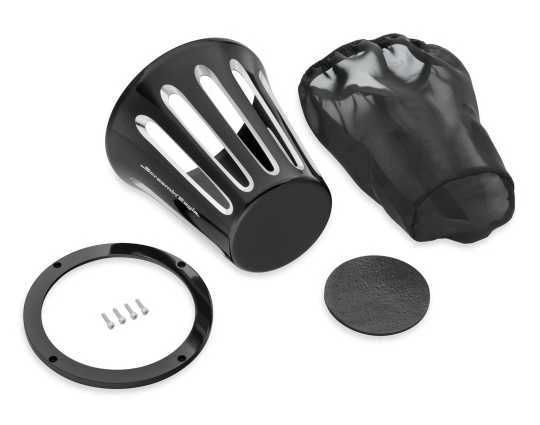 Geeignet für Harley-Davidson Twin Cam & Sportster XL mit Heavy Breather Luftfilterelemente (außer Kompaktausführung P/N 28716-10). Nicht in Verbindung mit dekorativen Filterendkappen. Cut Back schwarz – Seiten-Logo.