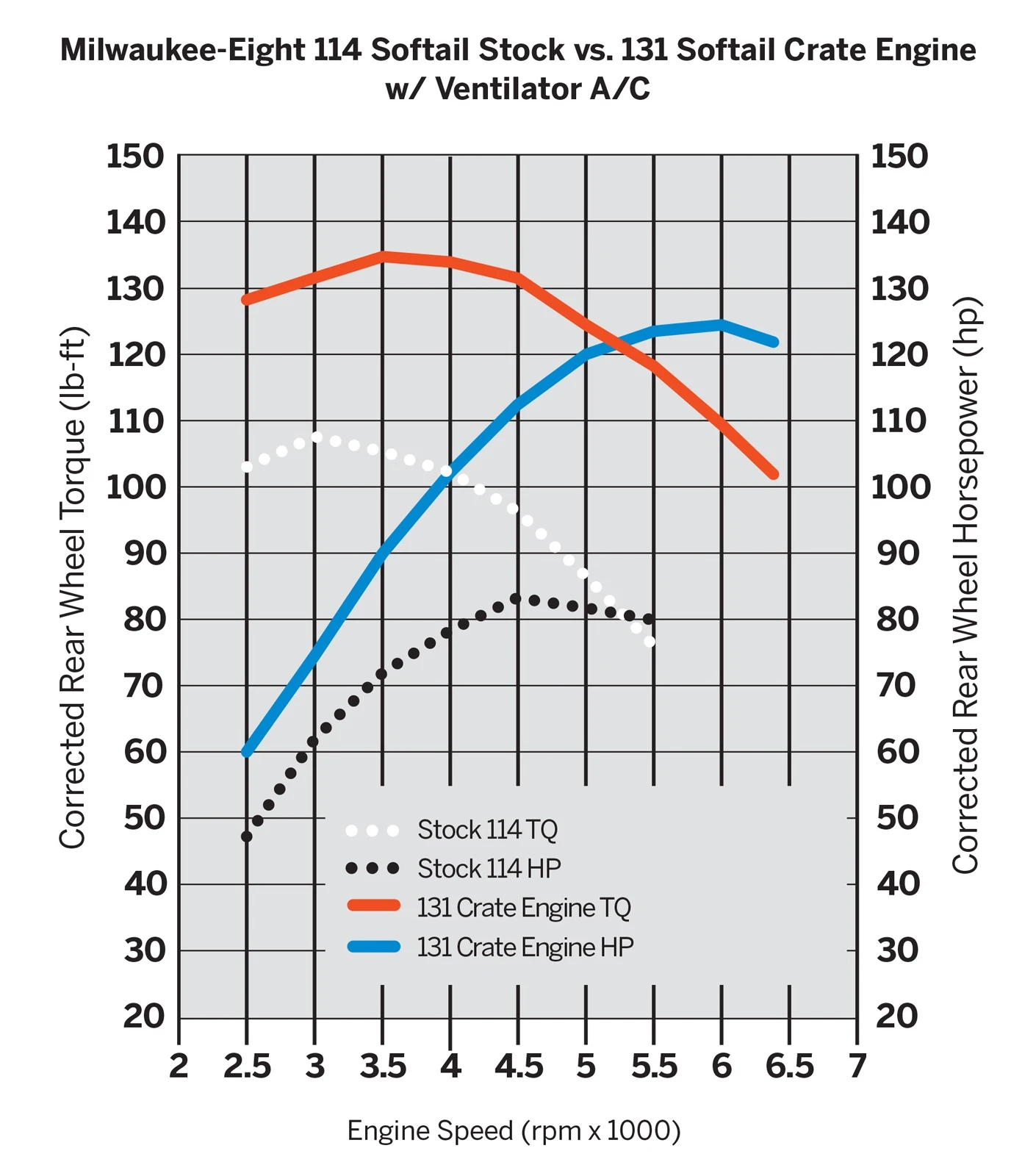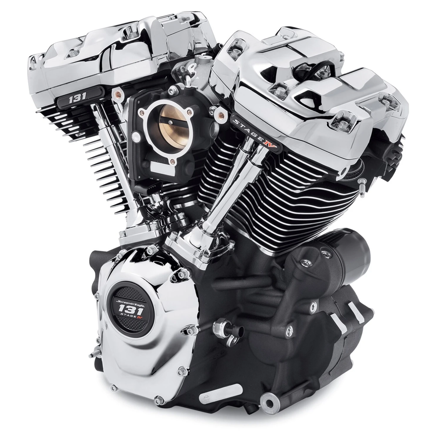 Leave other riders in the dust with the biggest, most powerful street-compliant crate performance engine Harley-Davidson has ever created. Built from the bottom up in Milwaukee, this street-tuned 131-cubic-inch Screamin Eagle Crate Engine is designed to run with a wide open throttle at high engine speeds and provide instant passing power from cruising speed. Made for riders seeking maximum displacement, compression and flow, it delivers 131 ft-lb of torque to the rear wheel as soon as the throttle is cranked. Stage IV equipped engine includes 131 Stage IV badging on the cylinder heads and timer cover to highlight the powerplant. This street-ready performance motor features the finest Screamin Eagle components: engraved CNC-ported cylinder head with CNC-machined chamber and 1mm larger valves, SE8-517 high-lift cam, high-compression forged pistons, high-performance cam bearing, high-performance tappets, patent-protected 4.31″ steel sleeve cylinders, 64mm throttle body and cast manifold and 5.5 g/sec fuel injectors.