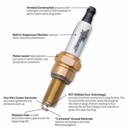 - Die V-förmige Masseelektrode sorgt für eine fokussierte Flammenfront, um die Flammenausbreitung zu unterstützen, und die mittlere Dünndrahtelektrode verbessert das Starten und die Zündfähigkeit. Screamin Eagle Zündkerzen basieren auf der Ribbed Core Technology (RCT), die sie widerstandsfähig gegen Ablagerungen macht