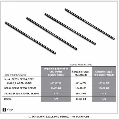 Passend für Harley-Davidson Twin Cam Modelle ab ’99. Bitte beachten Sie die beigefügte Tabelle für anwendbare Zylinderkopf- und Nockenkombinationen.