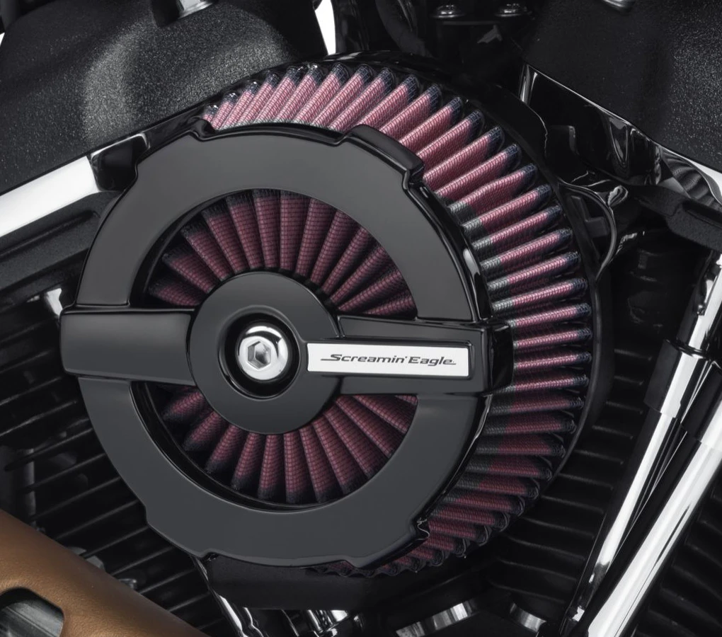 Passend für Harley-Davidson Softail Modelle ab ’18 sowie Touring und Trike Modelle ab ’17 mit rundem Screamin‘ Eagle High Flow Luftfilter.