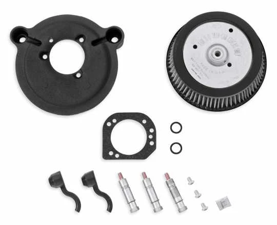 - Um Ihre Leistungssteigerung zur Schau zu stellen, können Sie aber auch den offenen Look wählen, den Sie durch den Regenschutz P/N 28728-10 und die Custom-Luftfilterverzierung aus einer der dekorativen Kollektionen von Harley-Davidson abschließen