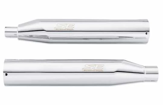 Diese Slip-On-Schalldämpfer, die für die Verbesserung der Performance des Milwaukee-Eight Motors entwickelt wurden, verfügen über einen großen Einlass für einen verbesserten Luftstrom. In Kombination mit einem frei fließenden Luftfilter bieten diese Street Cannon Schalldämpfer ein Mehr an PS und Drehmoment, das Sie spüren können. Die großen Schalldämpfer mit einem Durchmesser von 4,5 sind so eingestellt, dass sie einen vollen Auspuffton bieten, einen tiefbrummenden Bass, wenn Sie den Gashebel drehen. Um jedoch einen Ausgleich für Ihre Nachbarn zu bieten, hilft das große interne Volumen und die strategisch gestalteten Leitbleche dabei, die Ruhe bei teilweise aufgedrehtem Gashebel zu bewahren. Der Körper mit dem großen Durchmesser verleiht Ihrem Bike einen muskulösen Look, und die neu entworfenen Montageteile sorgen dafür, dass die Schalldämpfer nah an den Taschen eingesteckt sind, so dass ein sauberes Profil entsteht. Diese Street Cannon Schalldämpfer tragen auf ihren Flanken ein druckgegossenes Screamin Eagle Medaillon und können mit einer breiten Palette an Endkappen ausgerüstet werden, die das perfekte Tüpfelchen auf dem i sind.