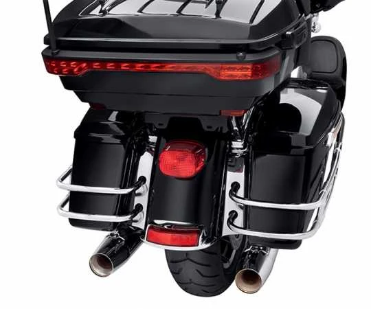 Passend für Harley-Davidson Touring Modelle ab ’14 mit Hartschalen-Seitenkoffern und Seitenkoffer-Schutzbügeln aus dem Zubehörprogramm.