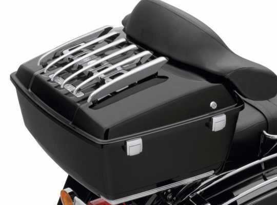 Elegant und praktisch. Der klassische, sechsstrebige Tour-Pak Gepäckträger wurde an die schlanken, gestreckten Linien der heutigen Custom-Motorräder angepasst.