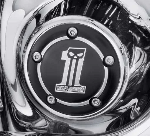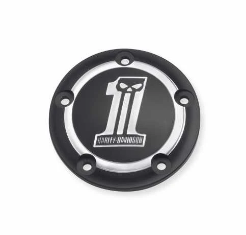 Der Timer Deckel zeigt das berühmte Harley-Davidson Number One Logo mit einem finsteren Einschlag.