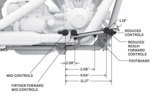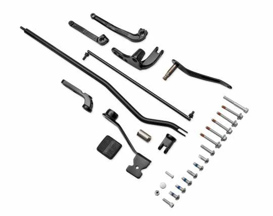 - Vollständiges Kit inklusive aller Bauteile zur Umrüstung einer Dyna mit Standard-Fußrasten auf eine vorverlegte Fußrastenanlage
