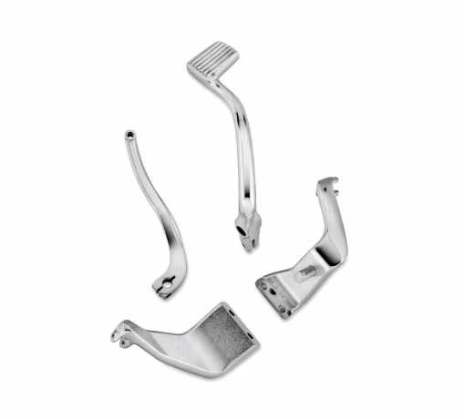 - Das Kit beinhaltet verchromte linke und rechte Fußrastenhalterungen sowie ein hochglanzpoliertes Bremspedal und eine verchromte Schaltwippe