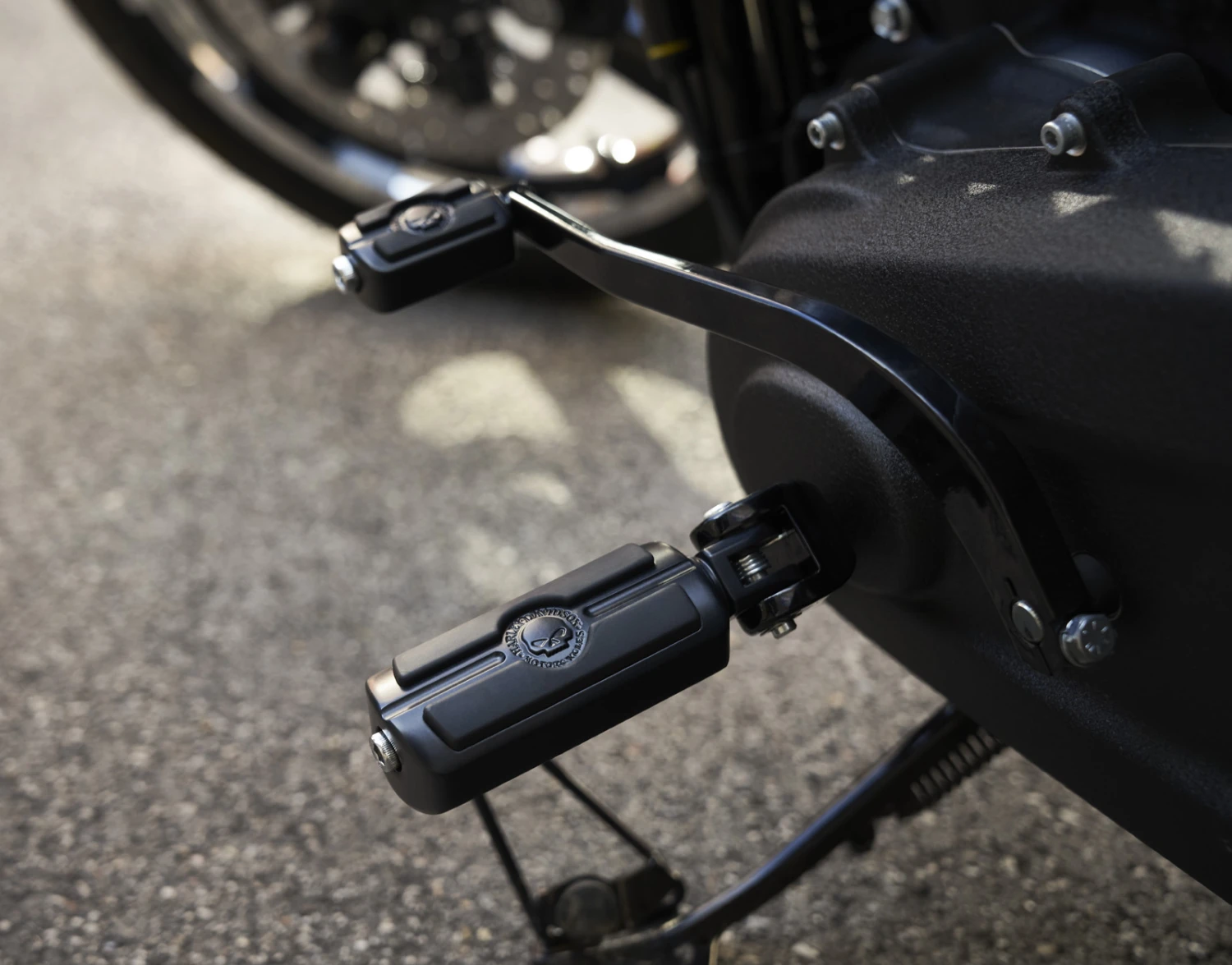 Diese obsidianschwarzen Fußrasten sind auf die anderen Artikel aus der Kollektion Willie G Skull abgestimmt und zeigen einen erhabenen Willie G Skull und den Schriftzug „Harley-Davidson® Motorcycles“ umgeben von tiefschwarzem Gummi für Grip und Traktion.